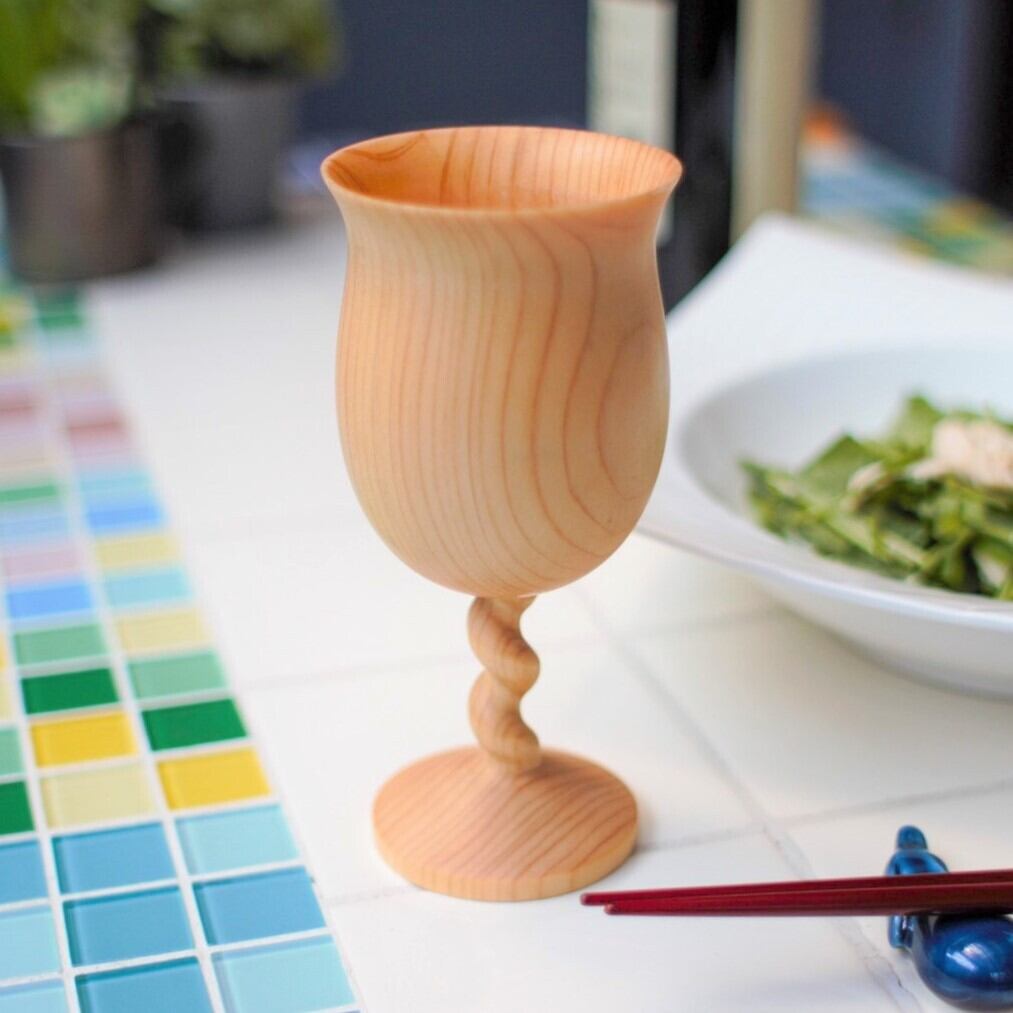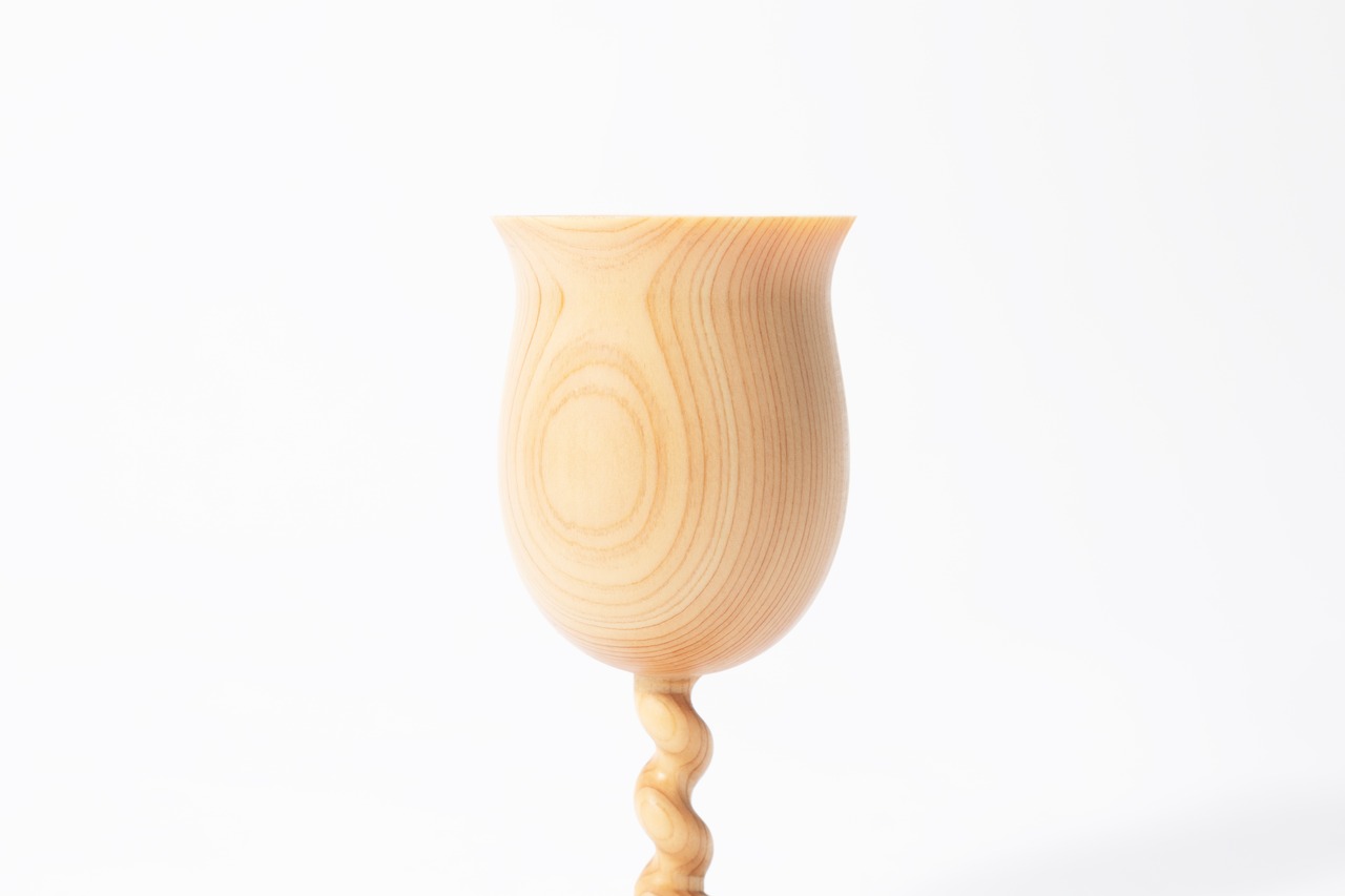 ステム(脚)に木工製品では難易度の高い螺旋をあしらって仕上げました。