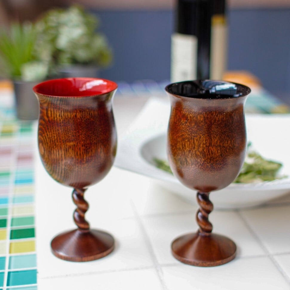 拭き漆にすると木目が美しいゴブレットです。