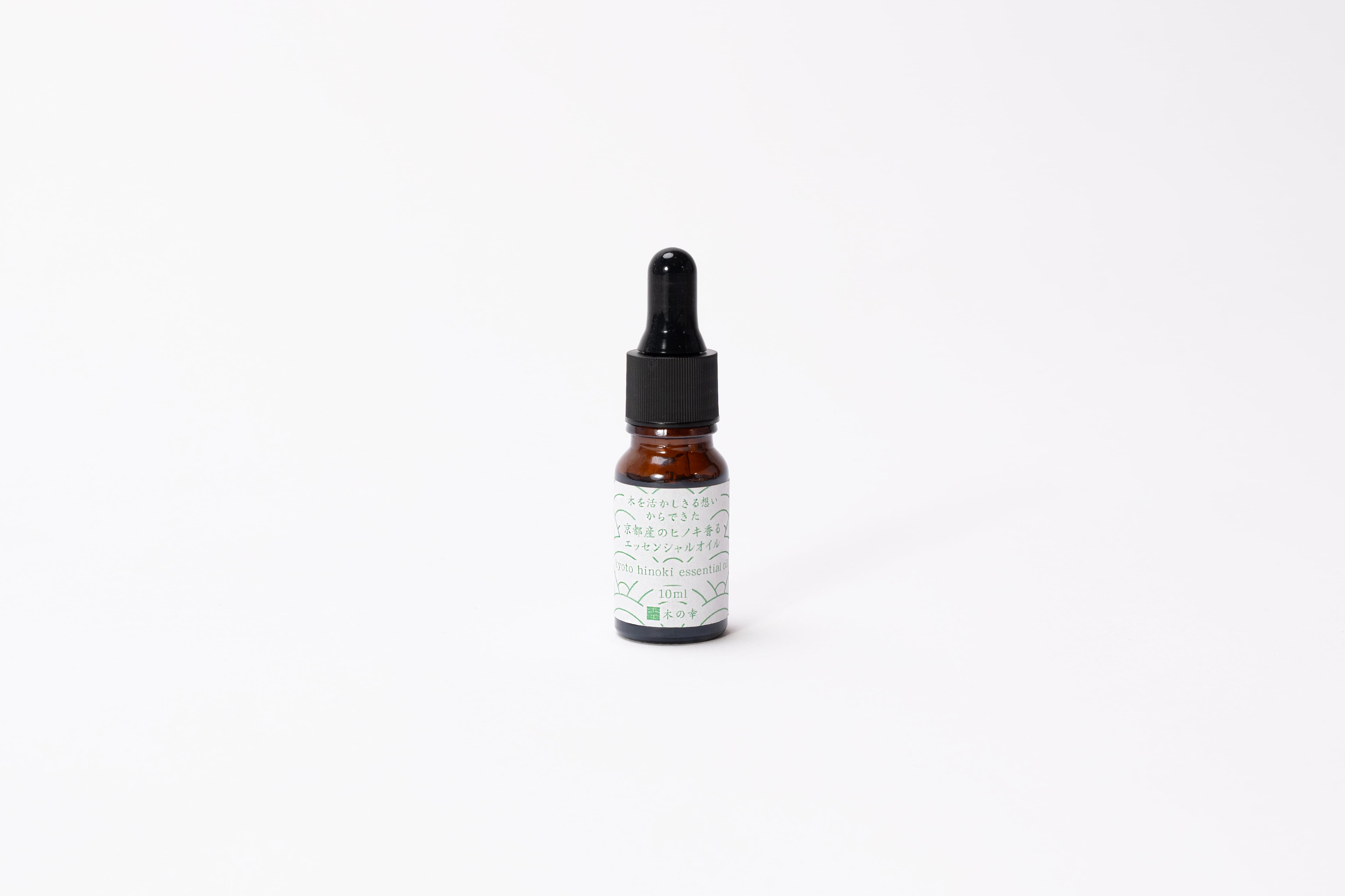家具、建具の製作中に発生する端材。木を活かし切るをコンセプトに、京都産ヒノキの端材から少量ずつエッセンシャルオイルを抽出しています。